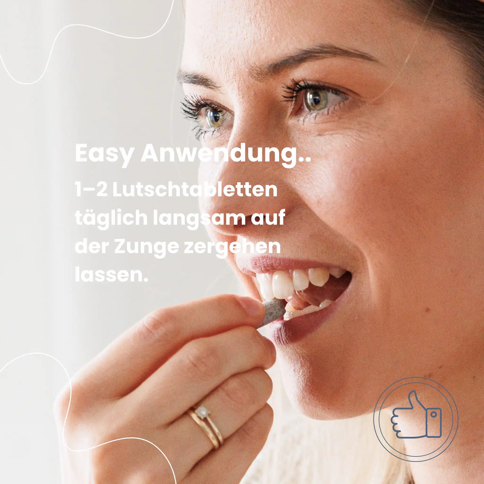 1–2 Lutschtabletten täglich langsam auf der Zunge zergehen lassen. Für optimale Mundhygiene empfehlen wir, nach dem Zähneputzen eine Tablette zu lutschen und in den nächsten 30 Minuten keine Nahrung zu dir zu nehmen.